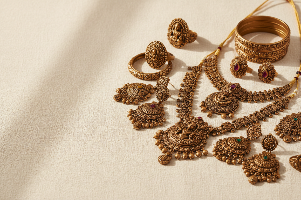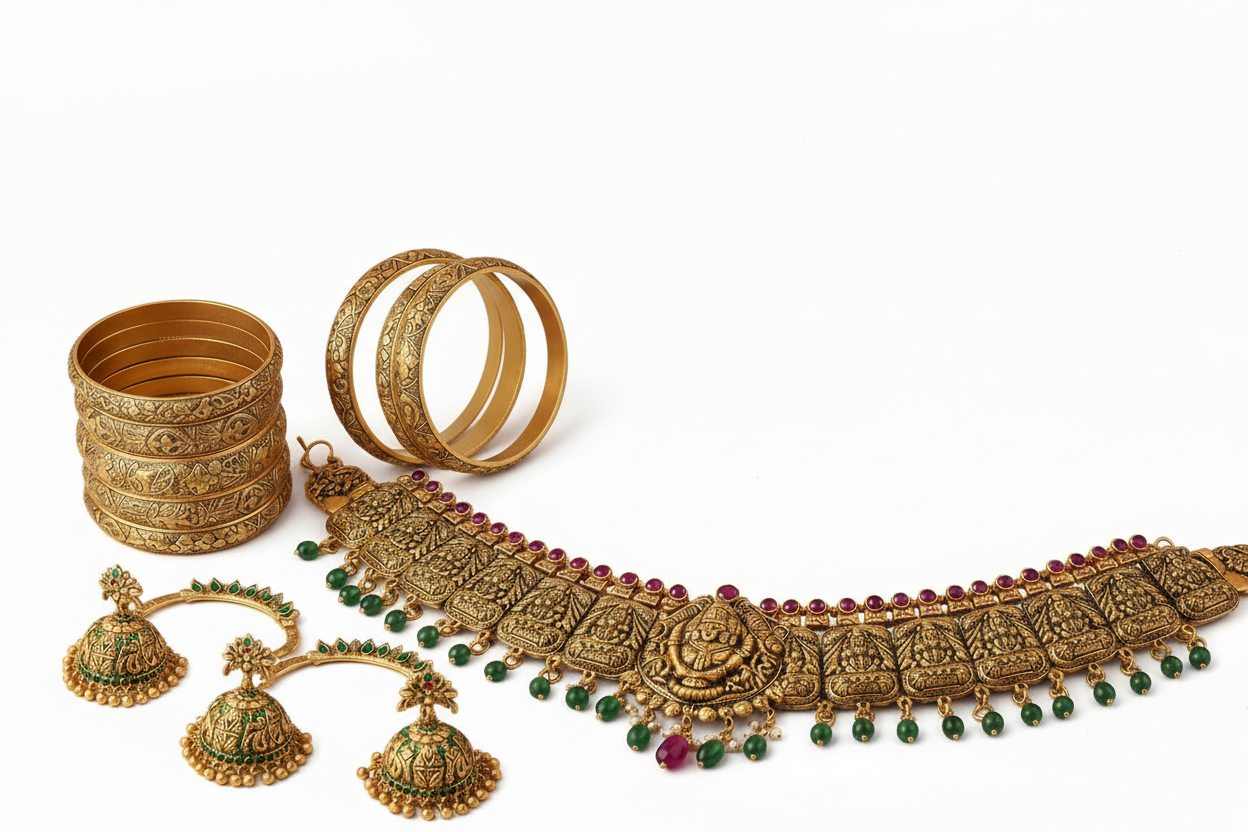 Each jewel reflects a harmonious blend of 1 Gram Gold Plated and Panchaloha craftsmanship, designed for the modern individual.